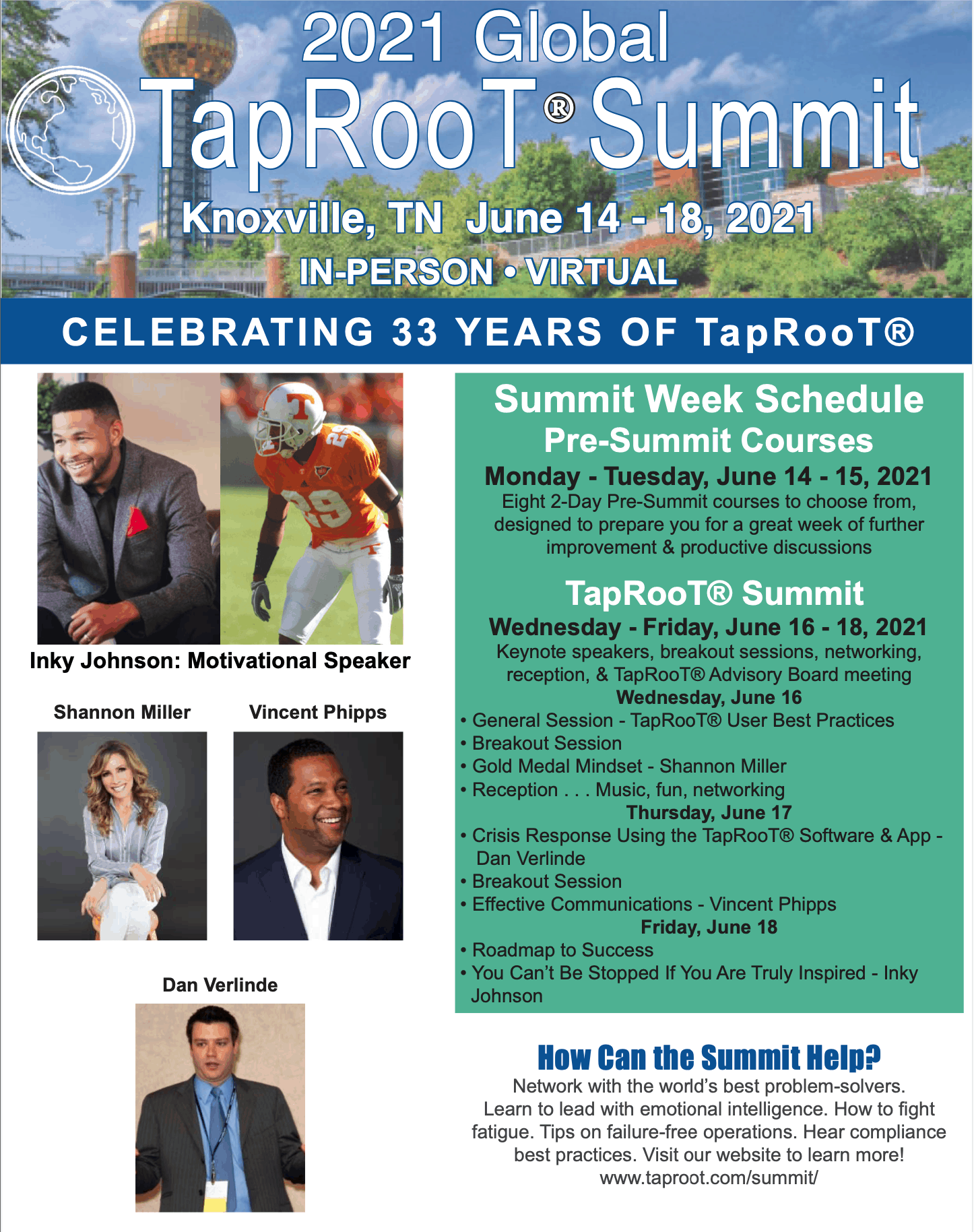 The 2021 Global TapRooT® Summit will be held in Knoxville, TN, on June 14-18 both in-person and VIRTUALLY. Read on to see how the Summit developed over the years.