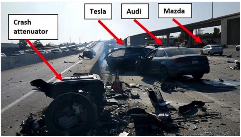 NTSB Investigates Automation-Related Accidents First Accident The picture above is an automation-related accident. According to the NTSB report, the driver, an Apple programmer, was probably playing a video game while the Tesla Model X was in “autopilot.” The picture below shows what the NTSB thought happened. When the HOV lane split left, the Tesla drifted … Continue reading Automation and Accidents