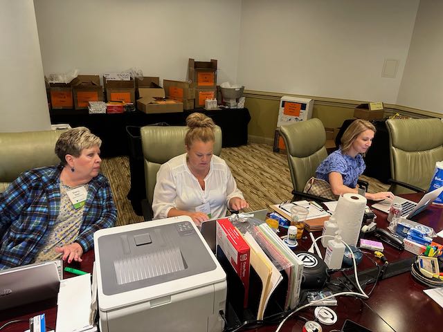 Here are some pictures of our wonderful staff making last-minute preps the day before the Summit starts…