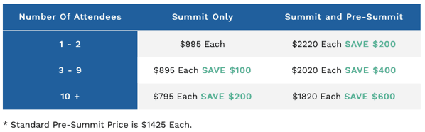 What is the registration fee? Here is the base price and the discounts for attending a course and the Summit or for multiple attendees…