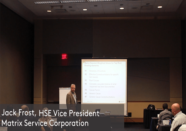 Jack Frost, Vice President of HSR for Matrix Service Company, is a longtime TapRooT® User. He has consistently strived to improve the use of TapRooT® and make his company’s incident investigations better. He is a member of the TapRooT® Advisory Board and several years ago helped us develop the grading system we offer for TapRooT® Users to evaluate and improve their investigations. He presented a talk at the 2018 Global TapRooT® Summit about his experience improving root cause analysis by grading investigations and providing feedback to investigators. Watch the first half of his talk below.