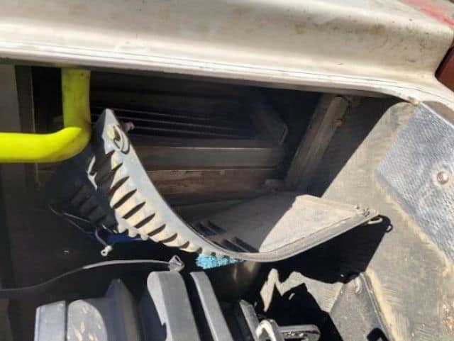 On January 11, 2021, a serious accident occurred while a mine worker was driving a truck in a Queensland mine. There was an explosion in the truck cabin, causing serious burns to the worker’s face, hands, and chest. Fortunately, the worker’s eyes were protected from the blast by safety glasses. The image above shows the deformation to the metal filter access panel for the air-conditioning (AC) system.