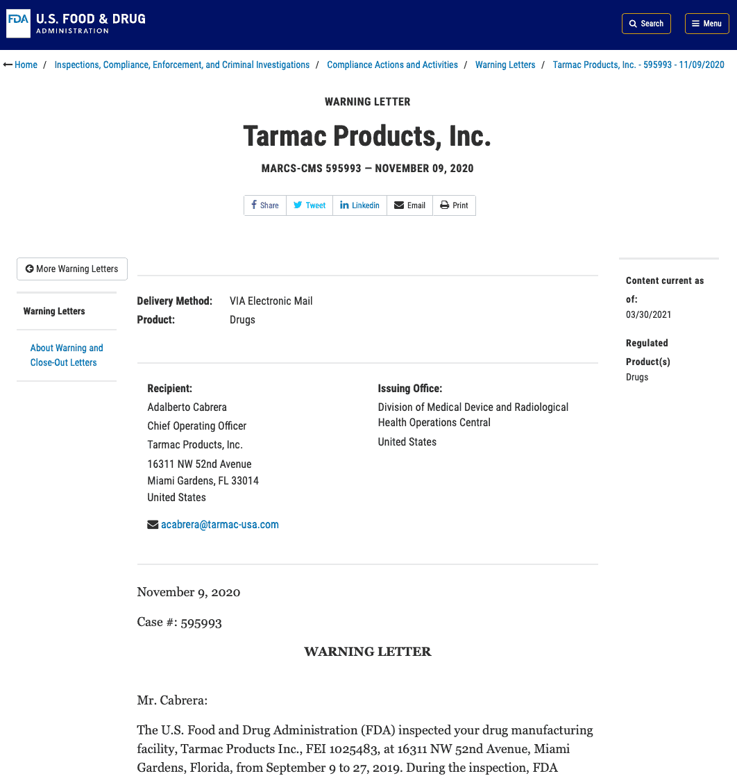 Florida Contract Manufacturer Warned by FDA to Perform and Improve Root Cause Analysis on Issues