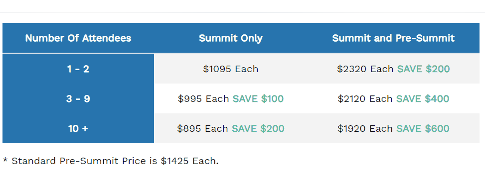 Did you know that if you register as a team with multiple people from you company you will receive incredible discounts! There a more reasons to sign-up other team members besides our discounts. Check out Mark’s article on why you should bring your team to our Summits.