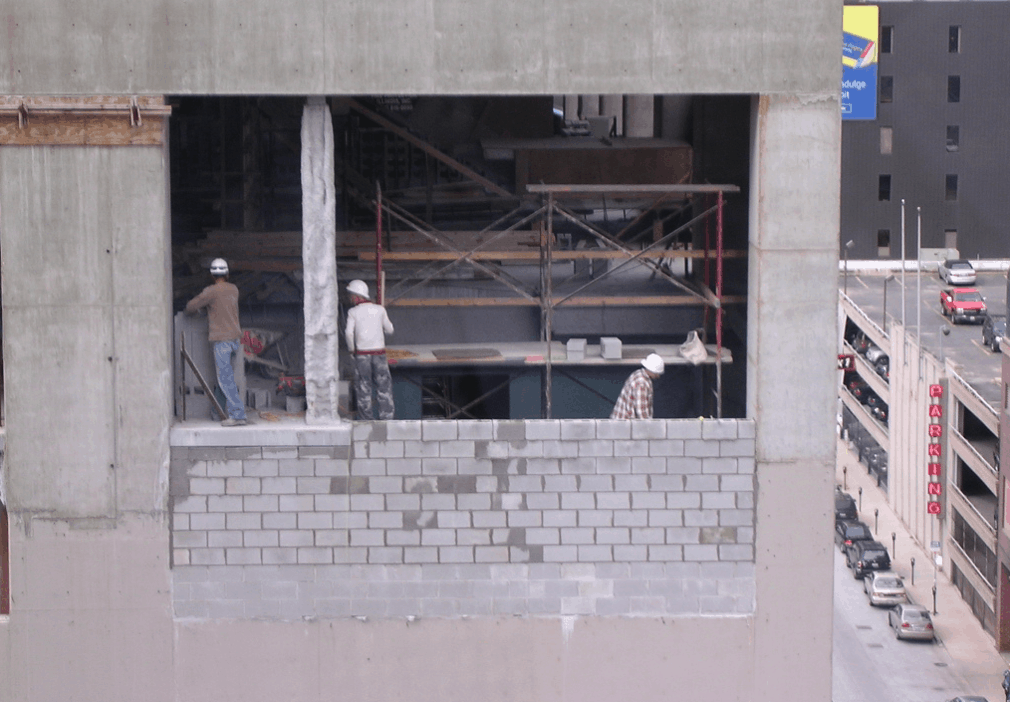 This picture was taken several years ago in Chicago. As you can see, there is no fall protection for the workers and no rails to prevent a fall. In addition, they were tossing concrete blocks and catching them. What would have happened to vehicles or bicyclists below if they had missed one and it went over the edge?