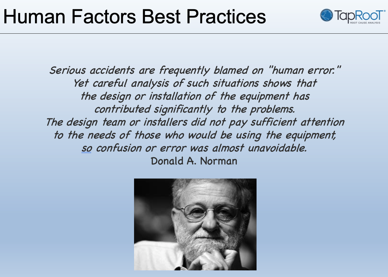 As Mark and Benna discussed briefly in the video above, TapRooT® Root Cause Analysis helps people by providing guidance to explore the reasons for human errors and reduce their likelihood. The guidance takes people beyond the knowledge of the team members because of embedded human factors technology in the TapRooT® RCA System.