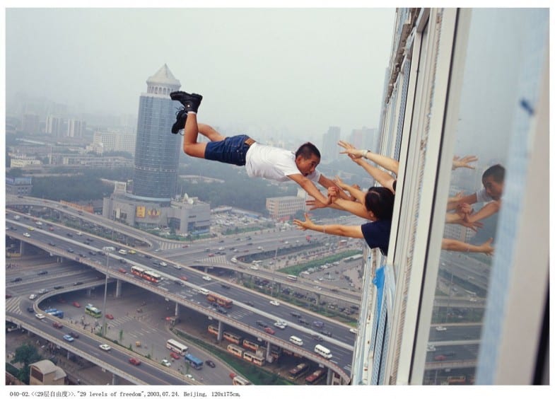 Rather than being a death-defying, desperate situation, this is art. You might call it “extreme” art. This picture, part of the “29 Levels of Freedom” is the work of photographer Li Wei. His passion for performance art is described as “anything but cautious or wary.”