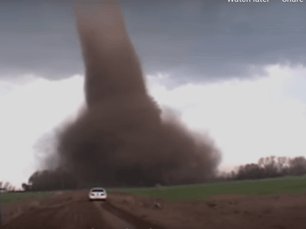 “As soon as our doors were closed I reversed and slammed on the gas. To escape the tornado, I had to drive very fast backward, keeping us in the road’s grooves,” Reed wrote. “As I steered looking through the rear window, Robin described what she was seeing. ‘It’s getting closer and it’s growing—it’s coming towards us.’ The tornado was now chasing us down the road.”