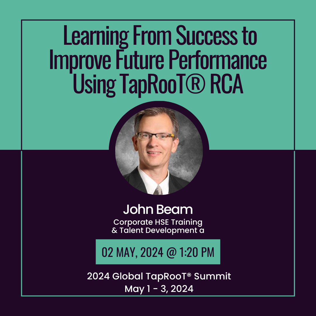 TapRooT® Root Cause Analysis is often used to investigate negative outcomes as a reactive methodology to prevent “recurrence.” The real power of the TapRooT® system comes when it is used proactively to investigate positive outcomes to prevent “occurrence,” or capture best practices when work is performed without error. John Beam will share how Fluor uses the TapRooT® System to document successful outcomes and show how the various TapRooT® processes can enhance work planning and improve future performance.