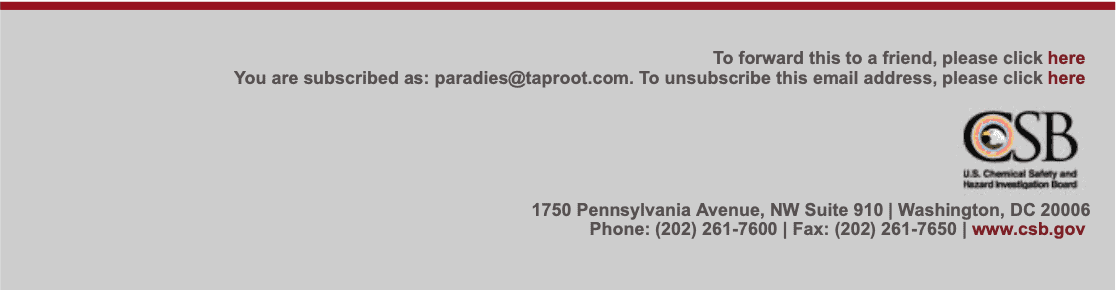 PRESS RELEASE: Third Information Release from the U.S. Chemical Safety and Hazard Investigation Board (CSB) on the Foundation Food Group Incident
