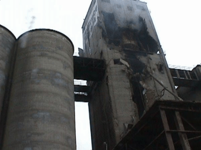 This initial ignition set of a series of explosion through out the facility begin in the the Eastern tunnel of the south array silos. The explosion utilized a crossover tunnel allowing it to spread in both directions of the two tunnels in the south array. Once it reached the head-house the blast and fire blew upwards through the head-house and into the southern and northern galleries. As the blast waves passed beneath the northern silos the blast rose through the silos and popped most of the silos tops off due to the intensity of the blast. The southern gallery wasn’t nearly as damaged as the northern gallery because a dust clean up had recently been completed. Most of the silos in the north array were destroyed by the explosion along with the 21-story head-house.