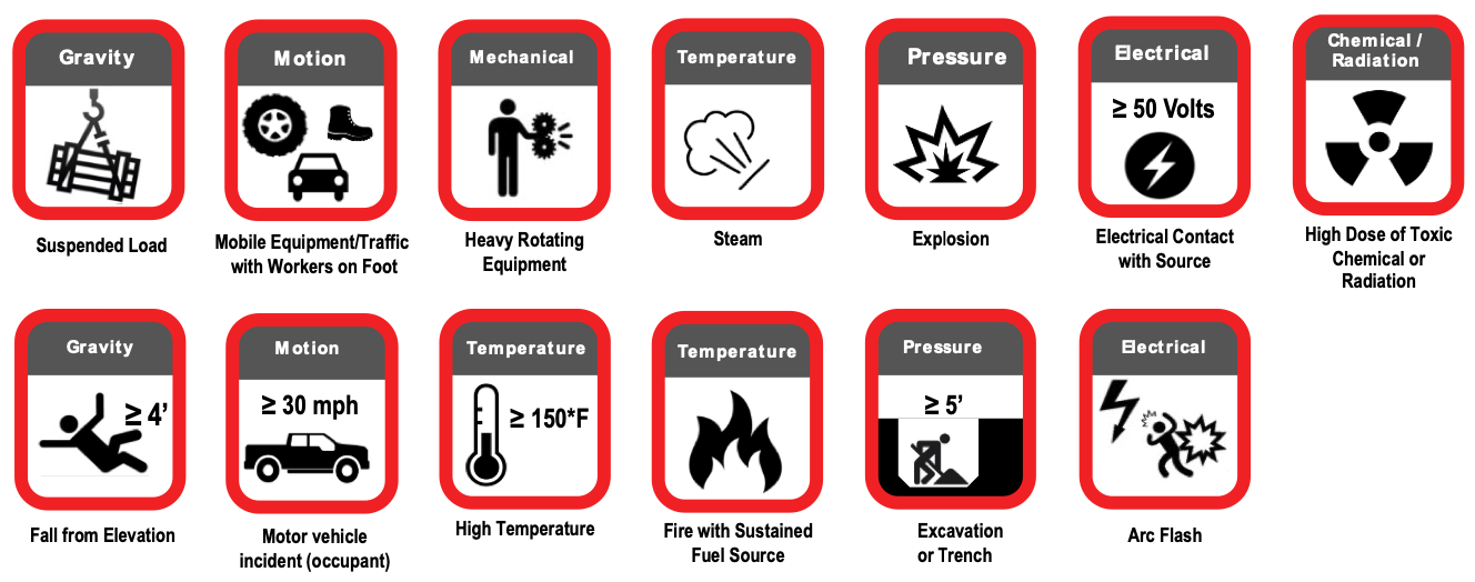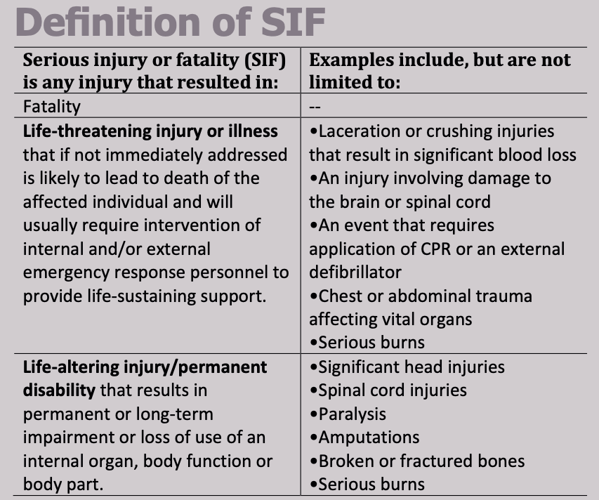 LSIF = Low-Energy Serious Injury or Fatality – Incident with a release of low energy in the absence of a direct control where a serious injury is sustained.