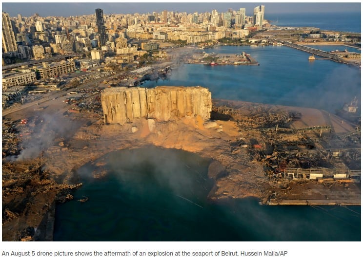 Updates: Explosion is now thought to be caused by 2,750 tonnes of ammonium nitrate stored for six years without safety measures at the port, according to Lebanese President Michel Aoun. We will be keeping up with the information but looking at the damage it is shocking to imagine they will be able to find out exactly what started the fire resulting in the explosion.