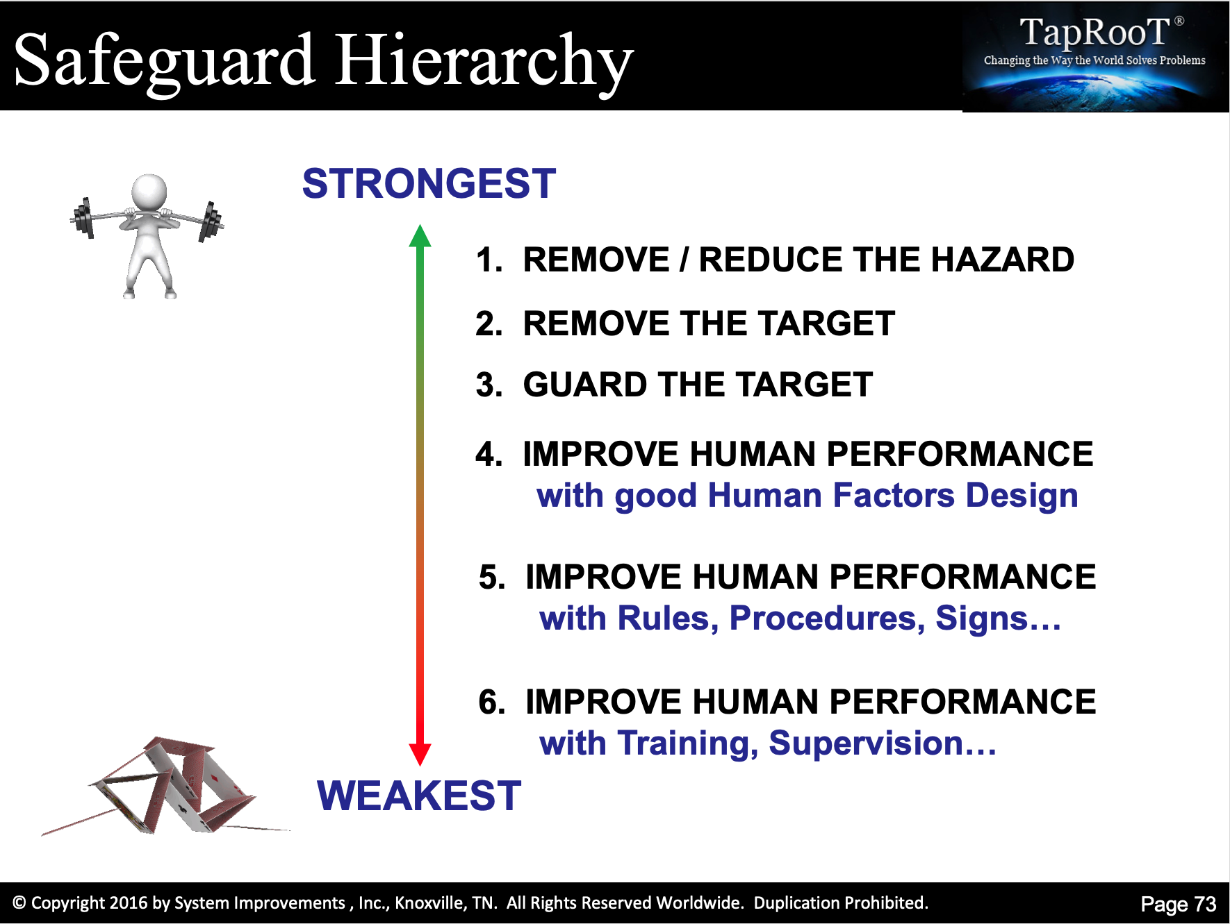 To learn more about proper safeguard design for equipment and operations, register for the next TapRooT® Root Cause Analysis course near you!
