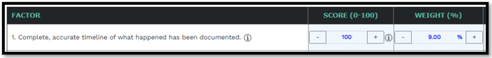 Users can add weight to each question according to which is more important to their company. Once you have checked your investigation against each question the Grading tool will give the user an overall Grade on the A to F scale and a percentage.