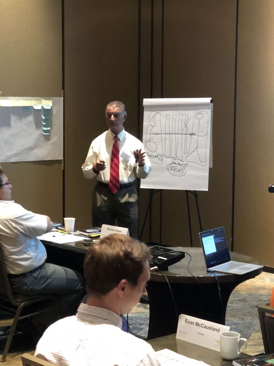 In the session, TapRooT® Users gather in small groups and share ideas about a particular topic. At the end of about 15 minutes, they select one of the best practices they heard as the sessions best. That person presents their best practice to the whole room. When all the topics finish sharing their top best practice, the topics and groups change and they repeat the process.