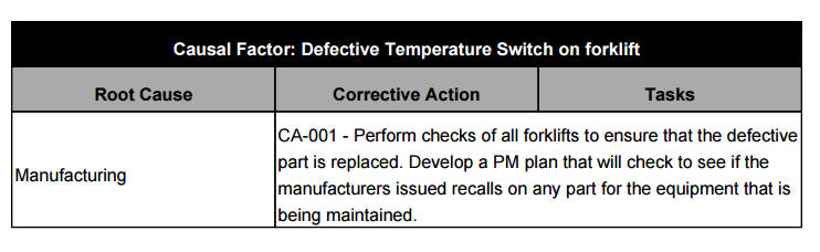 On the second page of our report, we added a table showing our Root Causes and Corrective Actions, grouped by Causal Factor. For your report, you can choose to show each individual fields such as Causal Factors, Root Causes, Generic Causes, Action Plans and Tasks. Each one of these can be dragged and placed on the report individually in any order, but by choosing to have the table we create an organized view for presenting to the management team.
