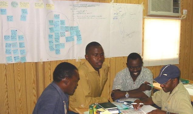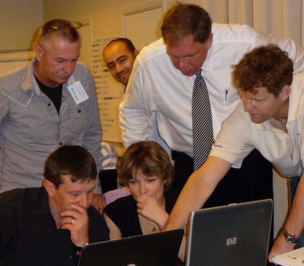 Sudents working on an exercise at a course in Dallas, TX, back in 2003
