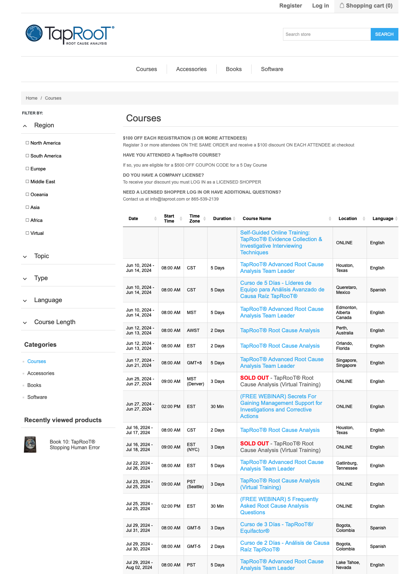 We hold root cause analysis courses open to the public all around the world. See the complete upcoming list HERE.