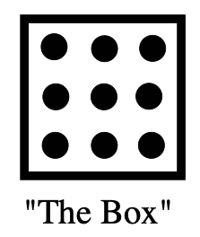 Above is the box example from an old course on problem solving that I went too back in the 1980s. The instructor asked the students to connect the dots using only straight lines. How many lines did it take?